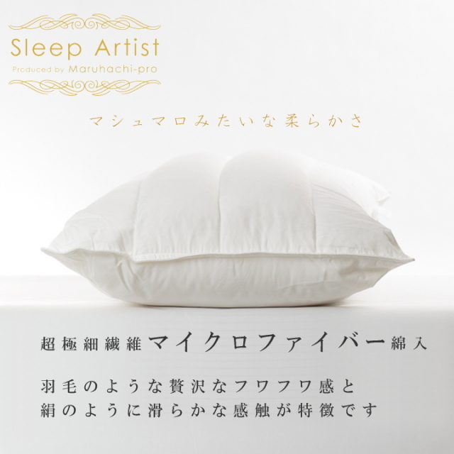 繊維が通常の約10分の1の太さのマイクロファイバー綿。まるで羽毛のようにふわふわで絹のように滑らかな感触です。羽根の匂いが苦手な方にも。